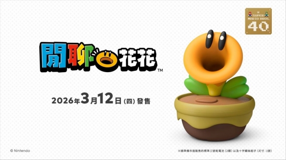 任天堂近日宣布,旗下热门游戏《超级马力欧兄弟 惊奇》中备受玩家喜爱的角色“闲聊花花”(日文名:おしゃべりフラワー)将推出实体版互动语音装饰品,该商品将于2026年3月12日正式发售,并支持中文。作为游戏中的标志性角色,“闲聊花花”以自由奔放的对话风格为玩家带来独特乐趣,常在冒险途中为马力欧加油打气或在关键时刻提供提示,其即兴、随性且略带吐槽感的互动方式深受玩家青睐。